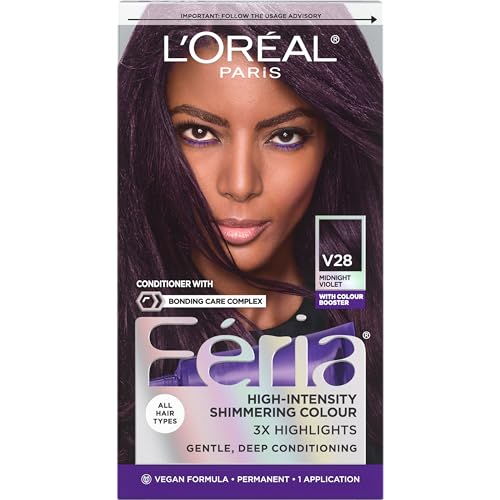 L’Oreal Paris Feria Multi-Faceted Shimmering Permanent Hair Color Hair Dye, V28 Midnight Violet (Deepest Violet)