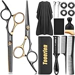 Sirabe 10 PCS Hair Cutting Scissors Set, Professional Haircut Scissors Kit with Cutting Scissors,Thinning Scissors, Comb,Cape, Clips, Black Hairdressing Shears Set for Barber, Salon, Home