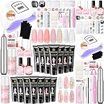 Saviland Poly Gel Nail Kit – 8 Colors White Nudes Pink Poly Gel with 180W U V LED Nail Lamp Base & Top Glue Gel Slip Solution and Nail Art Tools Starter Kit for Nail Extension & Enhansment Home DIY