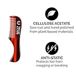 HANDMADE SAW-CUT MUSTACHE COMB (B11): Our Saw-Cut Mustache Comb is a must have item for anyone with a beard or stache. Created from Cellulose Acetate, our comb is saw-cut from sheets of plant-based material for a petroleum and plastic free alternative. With the static-free cellulose acetate construction, the comb features fine teeth which is best for removing tangles and aides with straightening strands. The comb is great for evenly distributing your favorite oil or wax through your hairs.