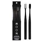 MOON Toothbrushes, Soft Bristle, White and Black Sleek Toothbrushes, 2 Pack