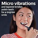 Micro vibrations and tapered bristles made of soft nylon gently polish teeth for a brighter smile