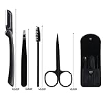 4 Pcs Stainless Steel Eyebrow Trimmer Set Eyebrow Grooming Brush Razor Eyebrow Shaping Scissors Professional Eyebrow Tweezers Beauty Tools with PU Leather Travel Case