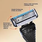 THE RAZOR: 4 precision cut, stainless-steel razor blades in a compact razor head help you achieve an effortless shave. Razor blades spaced for easy rinsing.