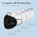 Funight KN95 Face Masks 50 Pack 5-Ply Breathable Filter Disposable Face Masks Black