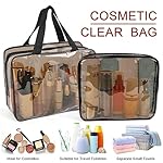 APREUTY Clear Makeup Bags, TSA Approved 6 Pcs Cosmetic Makeup Bags Set Clear PVC with Zipper Handle Portable Travel Luggage Pouch Airport Airline Vacation Organization (Black Brown)