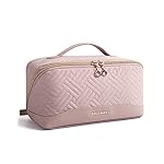 BAGSMART Travel Makeup Bag – Water-Resistant Portable Cosmetic Pouch, Flat Open Organizer for Toiletries and Brushes, Pink