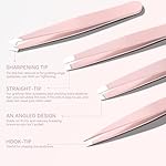 6 Pcs Eyebrow Tweezer Set, Tweezers Set for Women, Precision Tweezer for Eyebrows with Curved Scissors, Eyebrow Grooming Kit for Ingrown Hair, with Leather Case, Pink